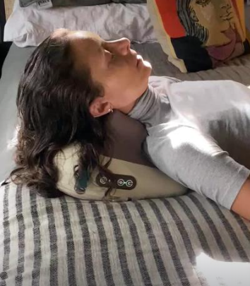 Je l’utilise surtout en fin de journée, quand je sens les tensions s’accumuler dans le haut du dos et la nuque. Dès que je m’allonge dessus, la chaleur douce et la forme bien pensée me permettent de relâcher profondément. Je remarque aussi une vraie amélioration sur ma mâchoire : moins de crispations au réveil, plus de détente générale.