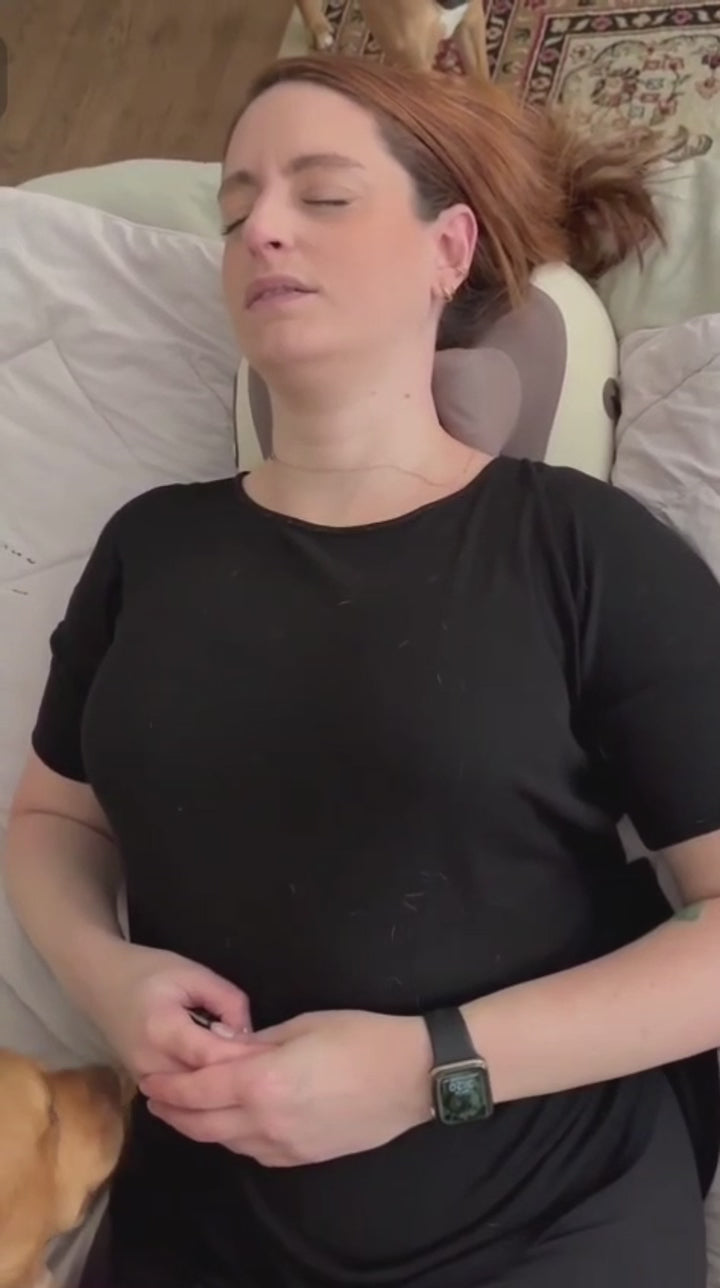 J’ai été bluffée. Je m’attendais à une simple sensation de confort, mais c’est bien plus que ça. Les muscles profonds du cou se relâchent vraiment. Et le fait de devoir s’allonger oblige à faire une vraie pause. Je recommande les yeux fermés.