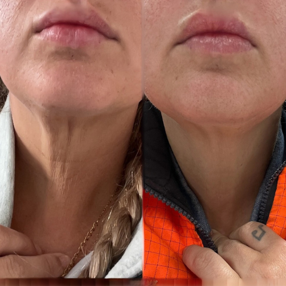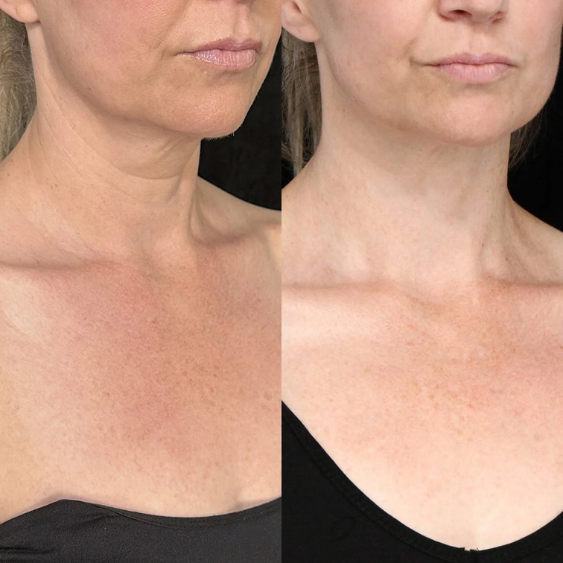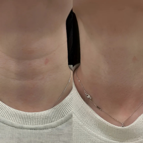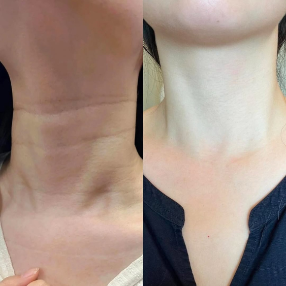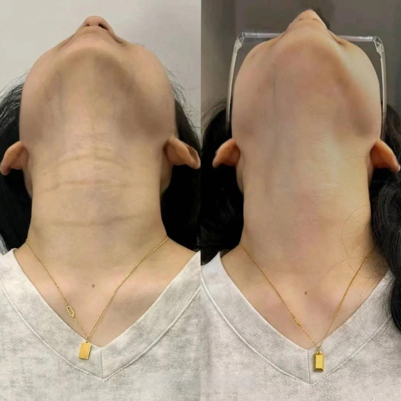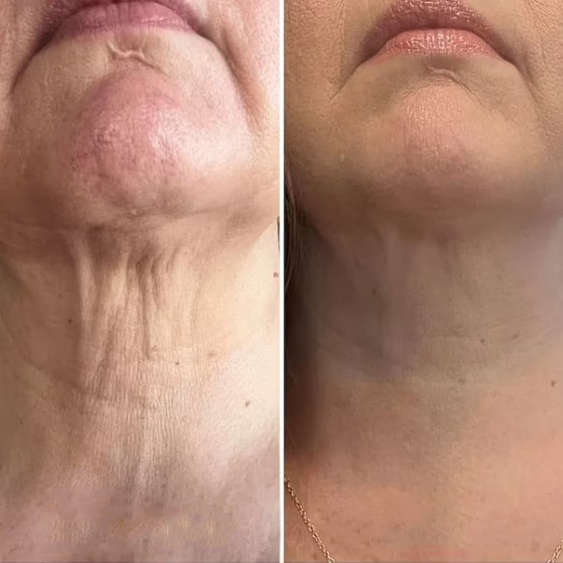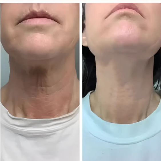 Une action complète, physiologique et visible. Le cou est plus net, plus tonique, visiblement plus jeune sans traitement invasif, ni solution superficielle.
