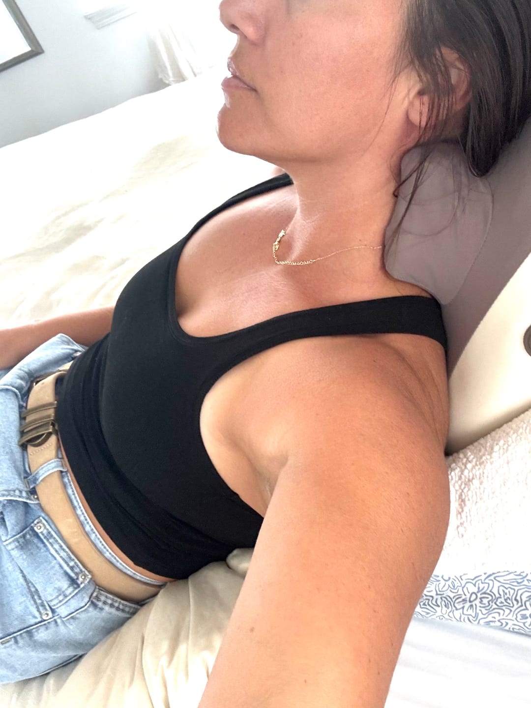 Je ne m’attendais pas à des résultats aussi visibles. Le contour de mon cou est clairement plus défini, et ma peau est moins “froissée”. Ce que j’aime : pas besoin d’y penser, je le fais allongée 10 minutes et c’est tout.