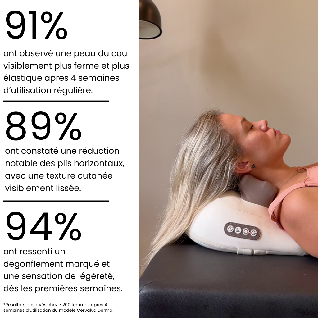 Je suis partagée. J’ai acheté Cervalya Derma Pro un peu sur un coup de tête après une pub qui m’a beaucoup parlé (et mes complexes aussi…). J’ai 38 ans, j’ai toujours pris soin de ma peau, mais le cou, j’avoue, j’ai négligé. L’appareil est bien fini, il chauffe vite, le massage est agréable… mais je trouve que les effets sont assez lents à apparaître. Je vois une légère différence après trois semaines, notamment le matin où je suis moins gonflée. Pour le prix, je m’attendais à un peu plus de transformation. Je continue quand même, car je sens que ça travaille en profondeur, mais il faut clairement être patiente.