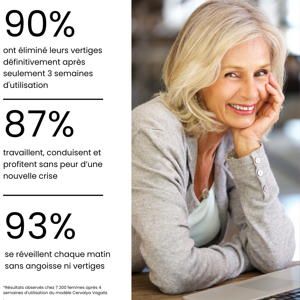 "Après 5 ans de traitements et d'exercices sans amélioration, seul Cervalya a réussi à éliminer mes vertiges" – Sylvie T, 52 ans